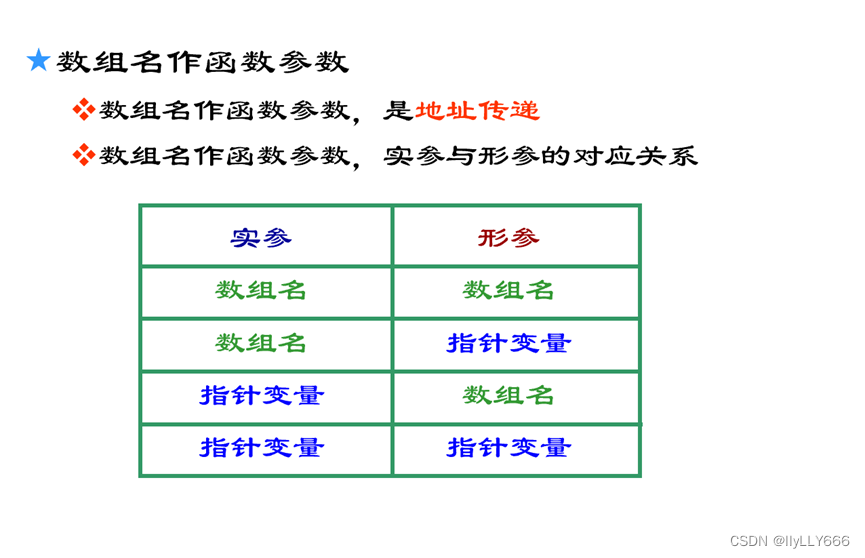 数组名作为函数参数,是地址传递,下图是实参和形参的对应关系