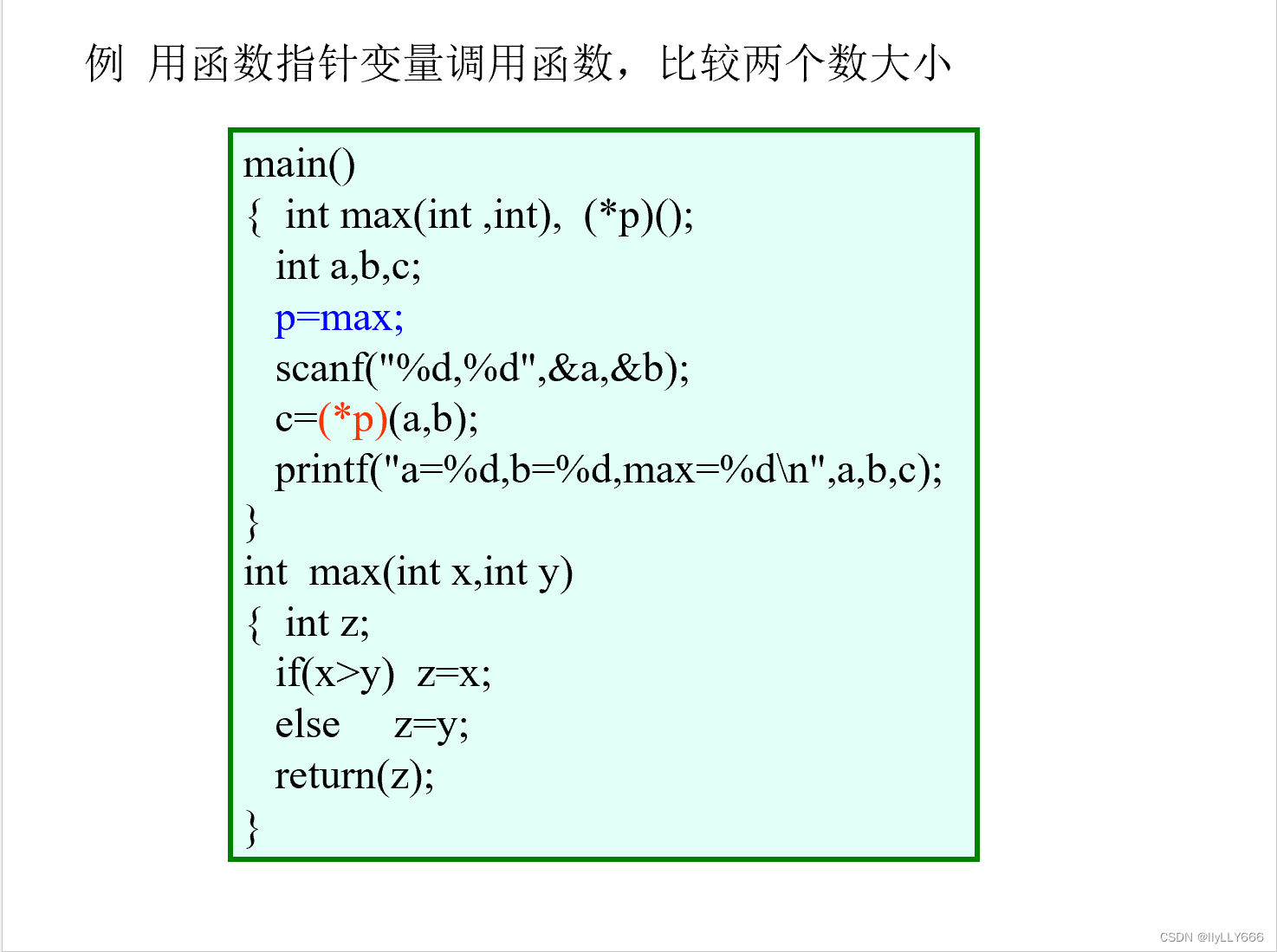 函数调用形式:c=max(a,b);,óc=(*p)(a,b)óc=p(a,b)