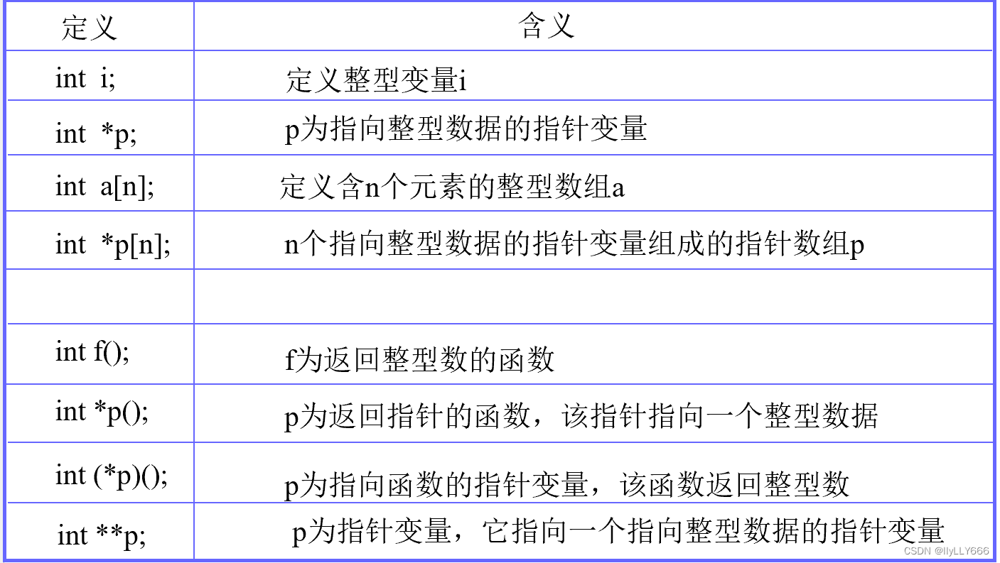 int *q=p;(用已经初始化过的指针变量作为初值)