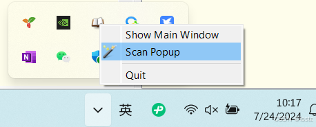 图标右键点击,可开启实时屏幕取词
