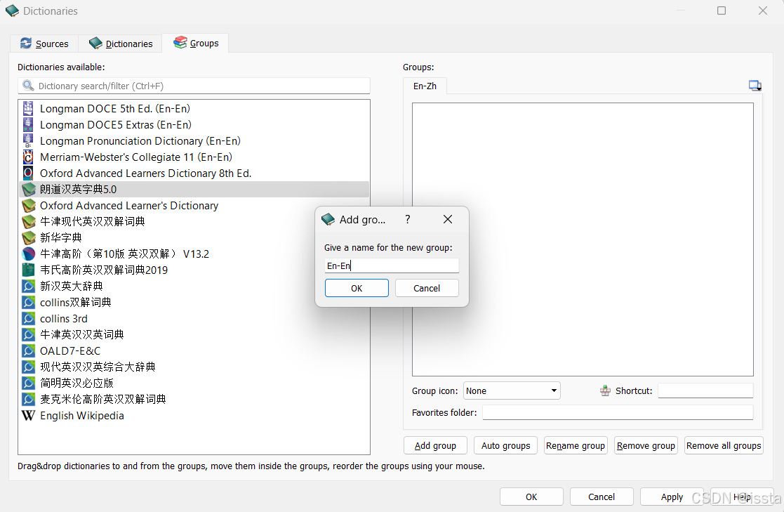 菜单栏选择【编辑】>【词典】,切换到Groups