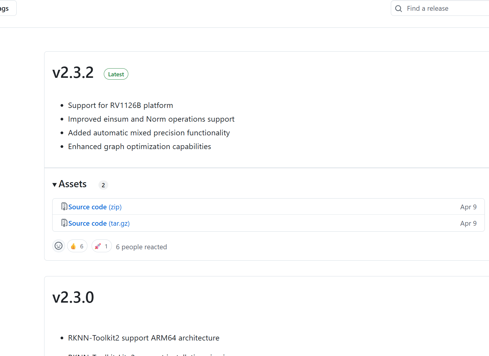 简单说明:使用到包:Releases · airockchip/rknn-toolkit2 可以看到以往和最新的版本