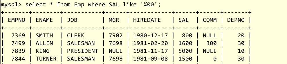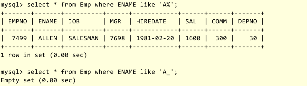 用like,通配符有两种,%和_,前者表示多个字符,后者只有一个字符。