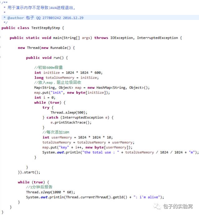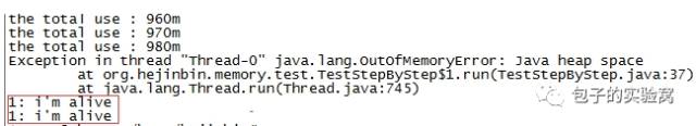 1, 当超出JVM的分配的内存时,JAVA进程并不会退出只是结束当前的线程