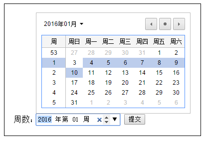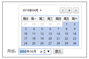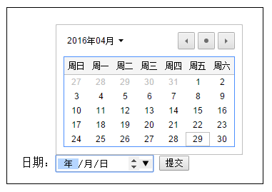 说明:显示一个日期控件,提供年月日的选择或自行输入。