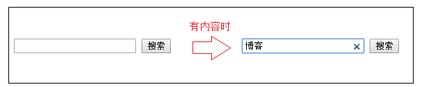 说明:在Chrome中搜索框没内容时就像普通的文本输入框,当有内容时右边有个'x'符号,用以清除文本内容。
