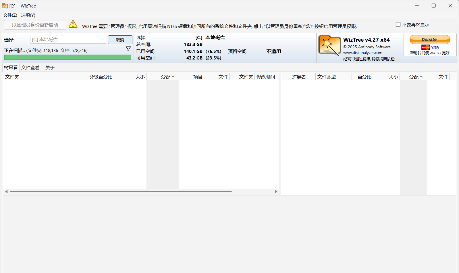 WizTree的核心价值在于其惊人的扫描速度和直观的可视化界面。当你的C盘空间告急时,它能帮你迅速找到占用空间最大的文件和文件夹。