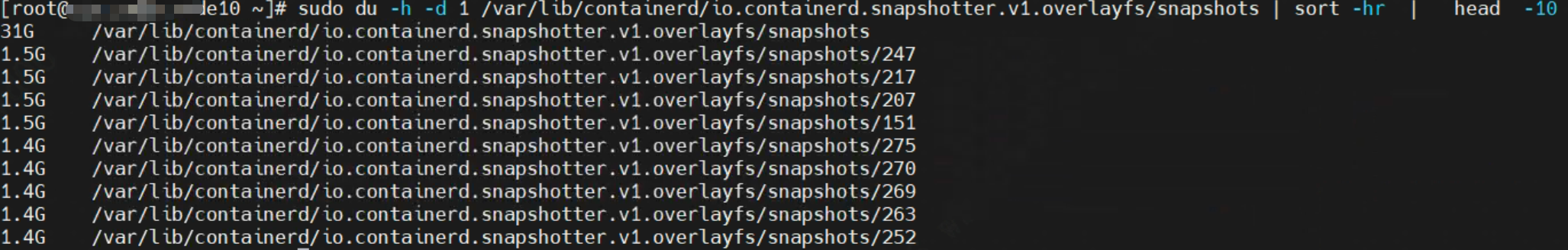 sudo du -h -d 1 /var/lib/containerd/io.containerd.snapshotter.v1.overlayfs/snapshots | sort -hr