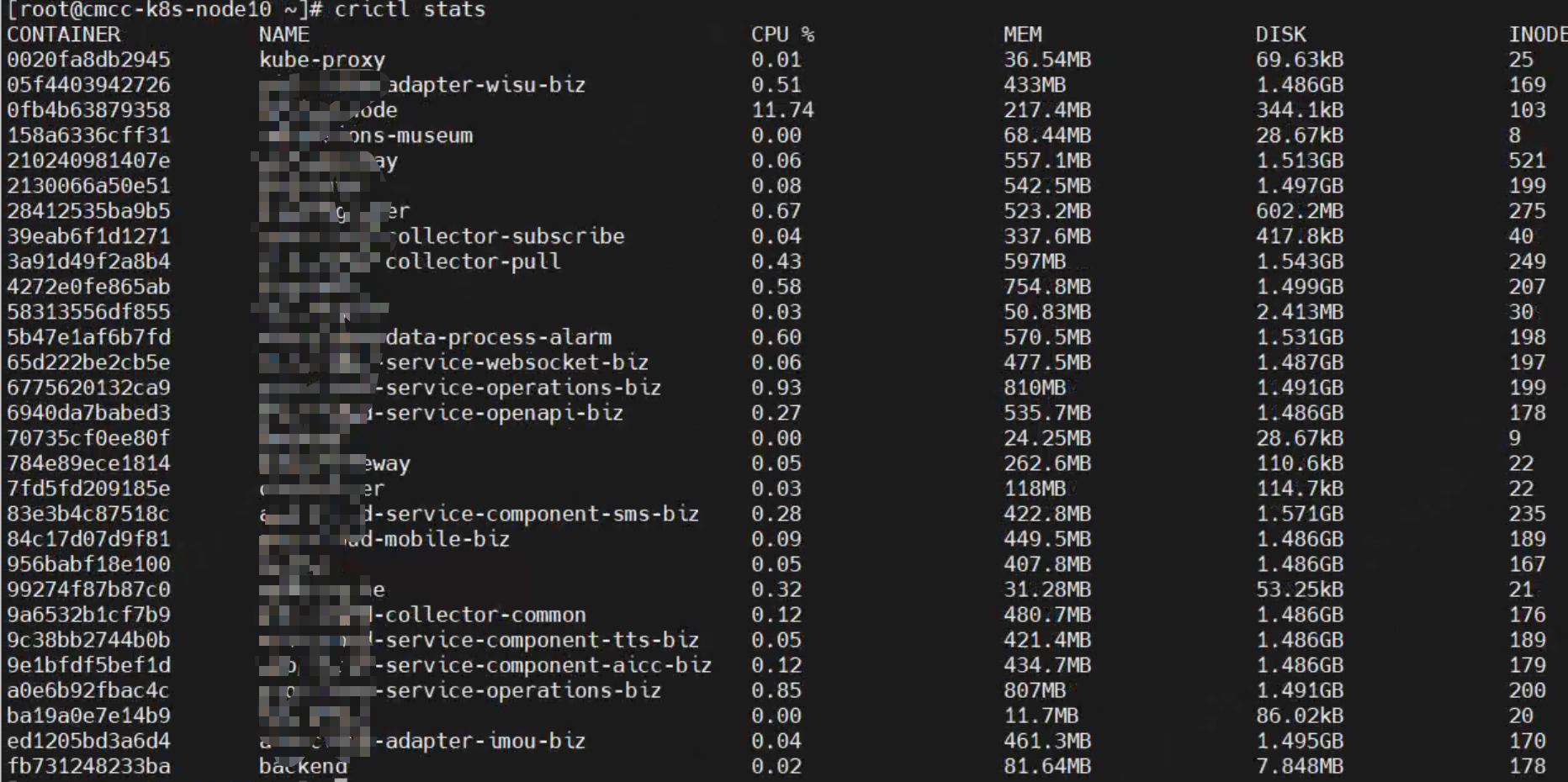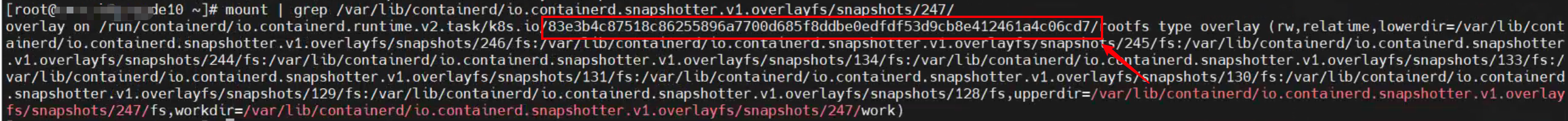 命令输出会显示包含容器ID的挂载点路径(通常在 /run/containerd/io.containerd.runtime.v2.task/...下),然后可以使用 crictl或 ctr命令通过该容器ID查看容器详情,即可找到对应的服务模块容器名称。