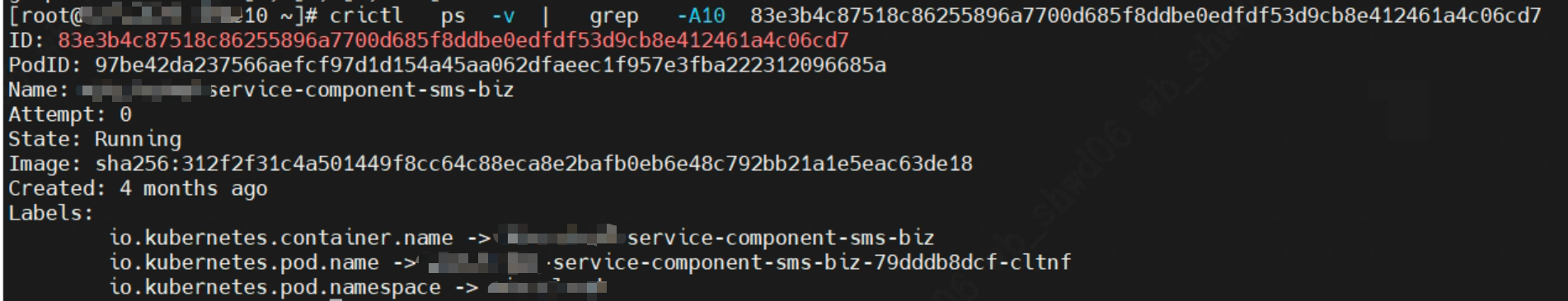 crictl ps -v | grep -A10 <完整容器ID或前几位>