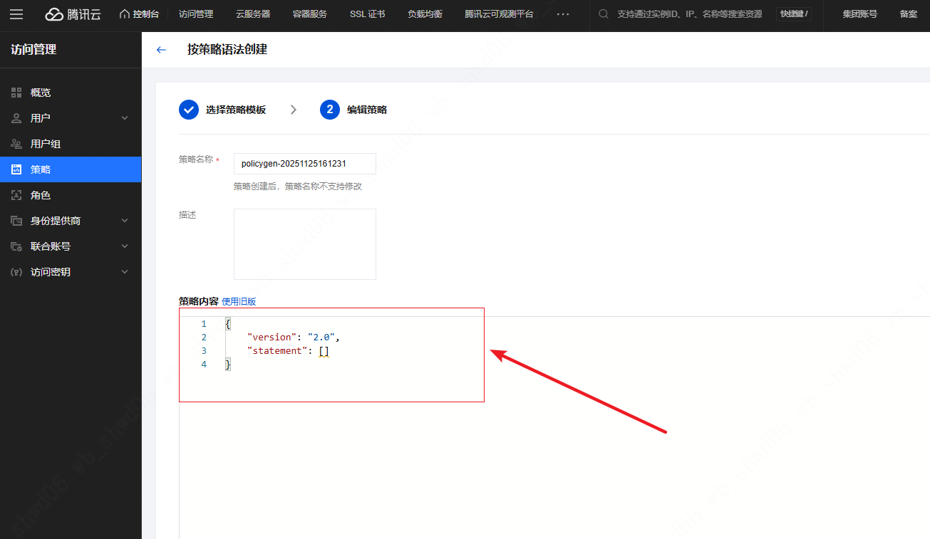 2.2 策略b:需配置ValidateUserPersonal、ValidateUserPersonal、DescribeImagePersonal权限