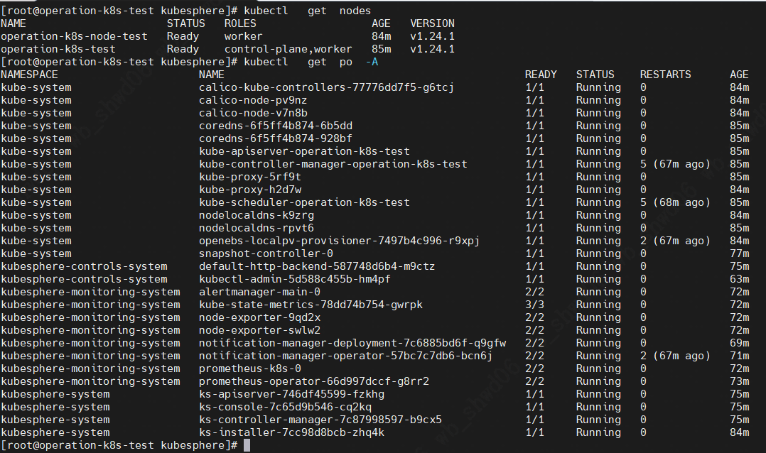 [root@operation-k8s-test kubesphere]# ./kk create cluster -f config-sample.yaml --with-kubernetes v1.24.1 --with-kubesphere v3.4.1