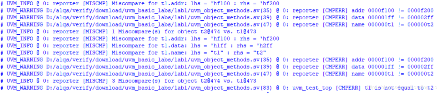 `uvm_warning("CMPERR", $sformatf("addr %8x != %8x", addr, t.addr))