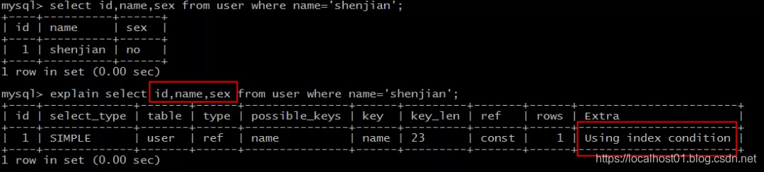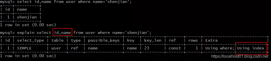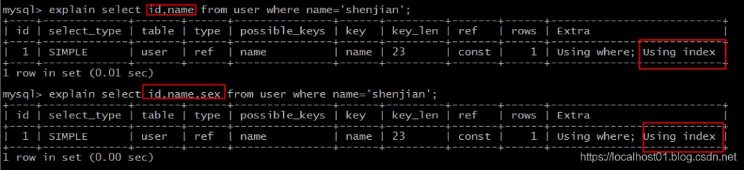 可以看到,上面两个查询都能够命中索引覆盖,无需回表。