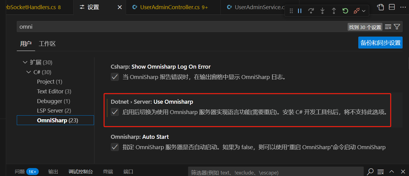 选项 设置中开启OmniSharp: