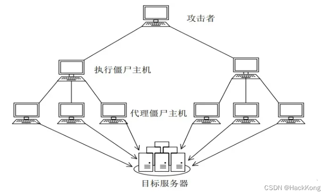 攻击者通过某些常用应用程序的漏洞来获得访问这些系统的权限,并安装自己的程序。这些被入侵的主机系统称为僵尸主机。一旦僵尸主机被安装上合适的后门程序,那么就会完全处在攻击者的控制下。攻击者控制的大量僵尸主机组合在一起就形成一个僵尸网络。DDoS攻击由此展示出真正的威力!!!