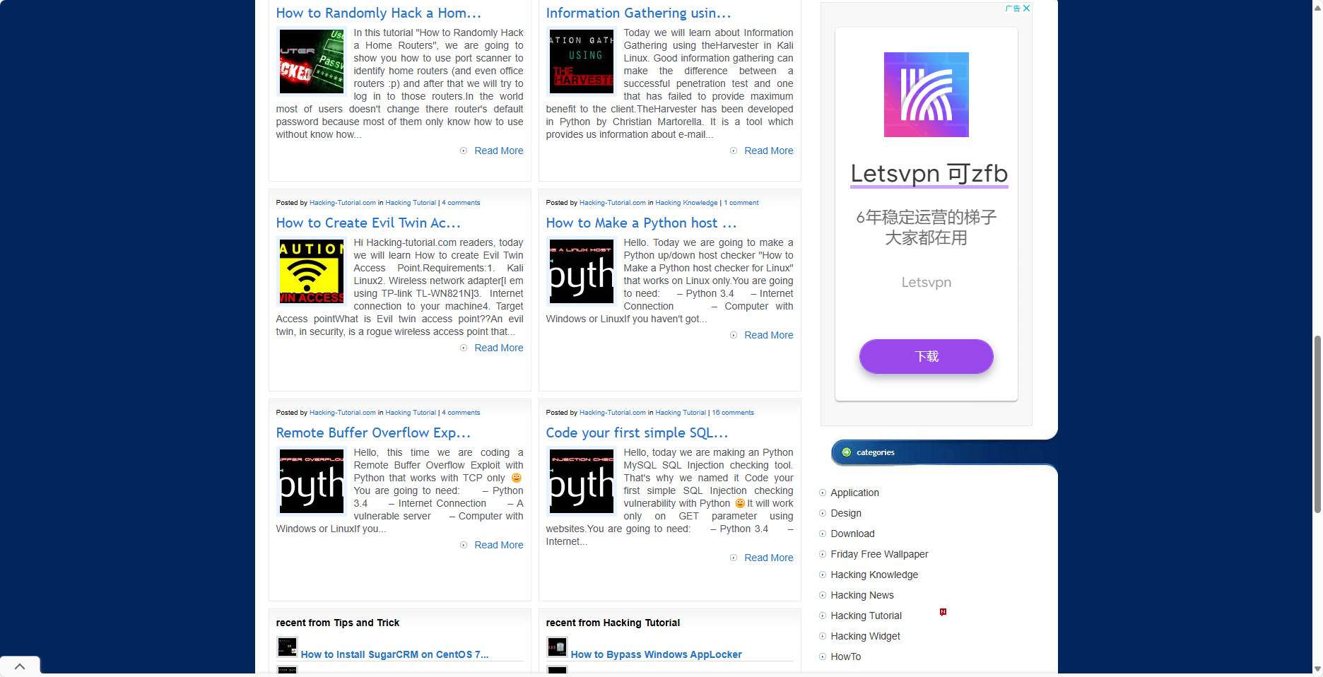 这个网站收集了数百个关于黑客和网络安全的教程,电子书和黑客工具等等都可以在该网站找到,此外,还提供了有关如何在本地入侵(比如在一台计算机上运行脚本)的相关知识。