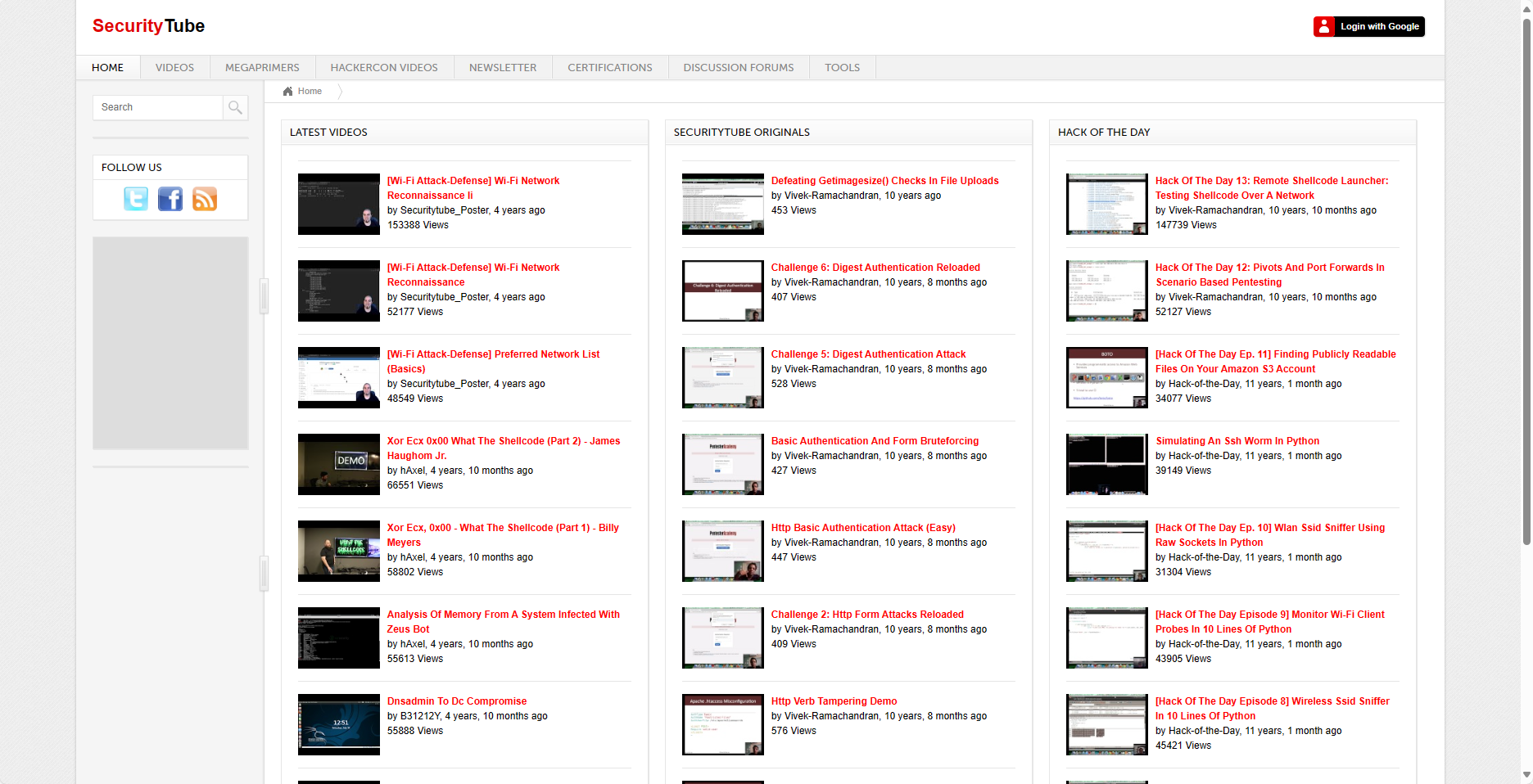 SecurityTube的所有视频都是引用自YouTube,上面的视频种类十分丰富,从攻防安全基础到编写测试,再到攻击等方面,这些视频都是由行业专业人士或者是经验丰富的安全研究人员编写的。该网站还提供一个名为SISE的IOS安全认证。