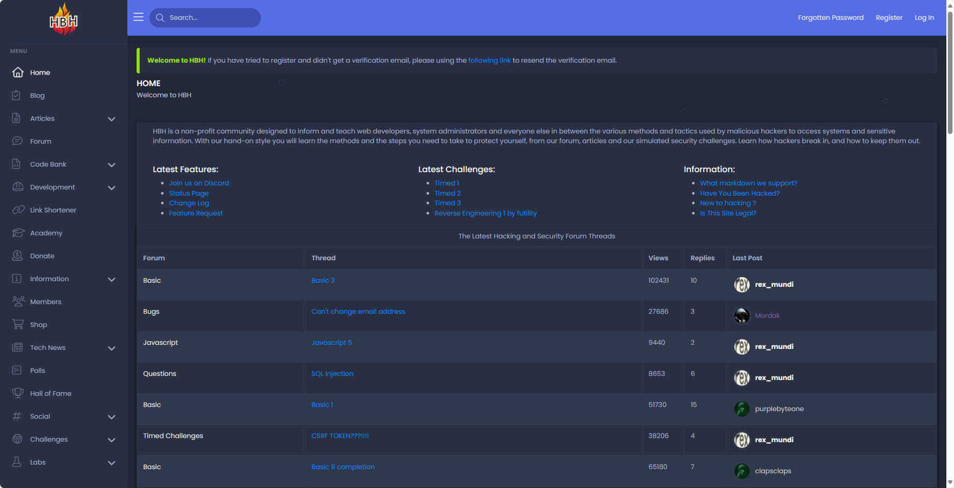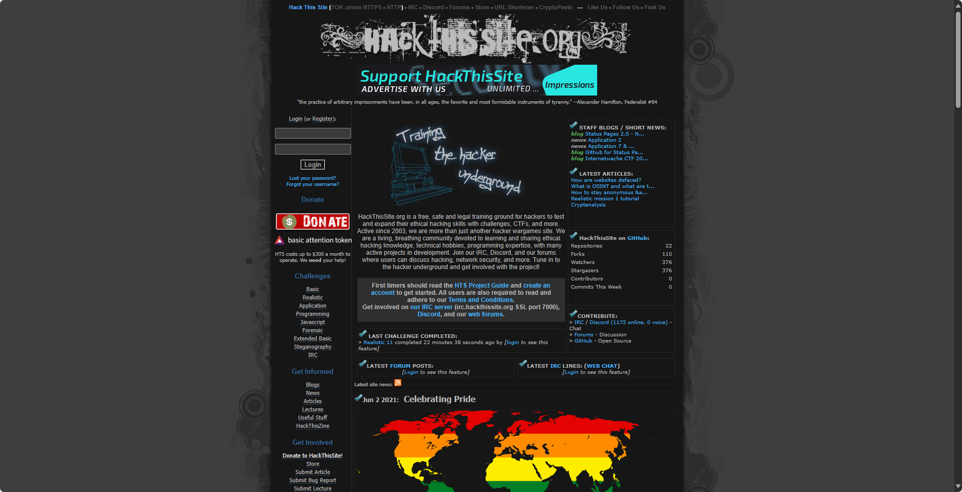 这个站点是一个寻找高质量资源的好地方,这些资源对一些攻击是如何进行的有一个深入的了解。最吸引人的地方是,它很多项目都是由一个大型的开发人员社区开发的,允许对各种各样的攻击进行尝试和测试。同时还有大量的黑客文章和一个巨大的论坛,用户可以在这里讨论黑客攻击,网络安全,此外,该网站还提供挑战任务来学习并练习黑客技术,从初学者水平到高级难度的都有