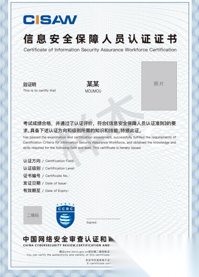 | CISAW安全运维 | 中国网络安全审查认证和市场监管大数据中心(CCRC) | |