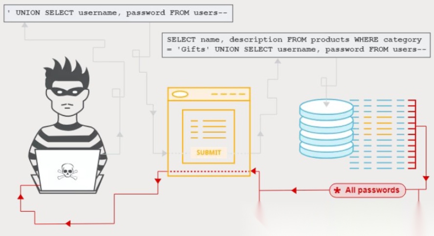 **而如何让Web服务器执行攻击者的SQL语句呢?**SQL注入的常规套路在于将SQL语句放置于Form表单或请求参数之中(比如说SELECT、DROP等等)提交到后端服务器,后端服务器如果未做输入安全校验,直接将变量取出进行数据库查询,则极易中招。