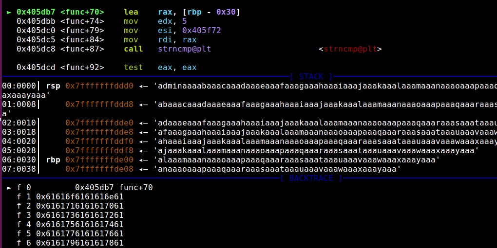 程序漏洞点是在输入用户名的地方存在栈溢出