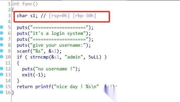 首先查看伪代码,栈空间建议使用gdb进行调试,伪代码查看可能不准确