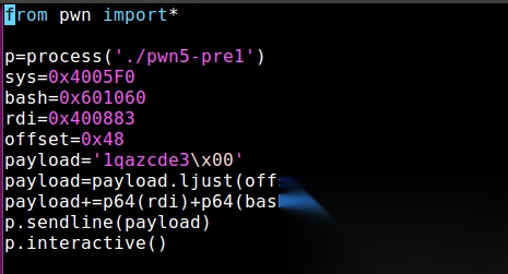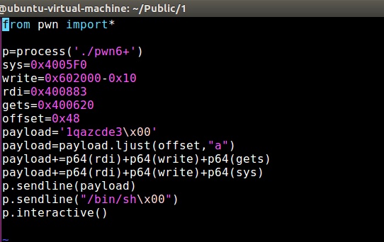 类似于题目三,不同点在于没有/bin/sh字符,需要使用gets函数写入