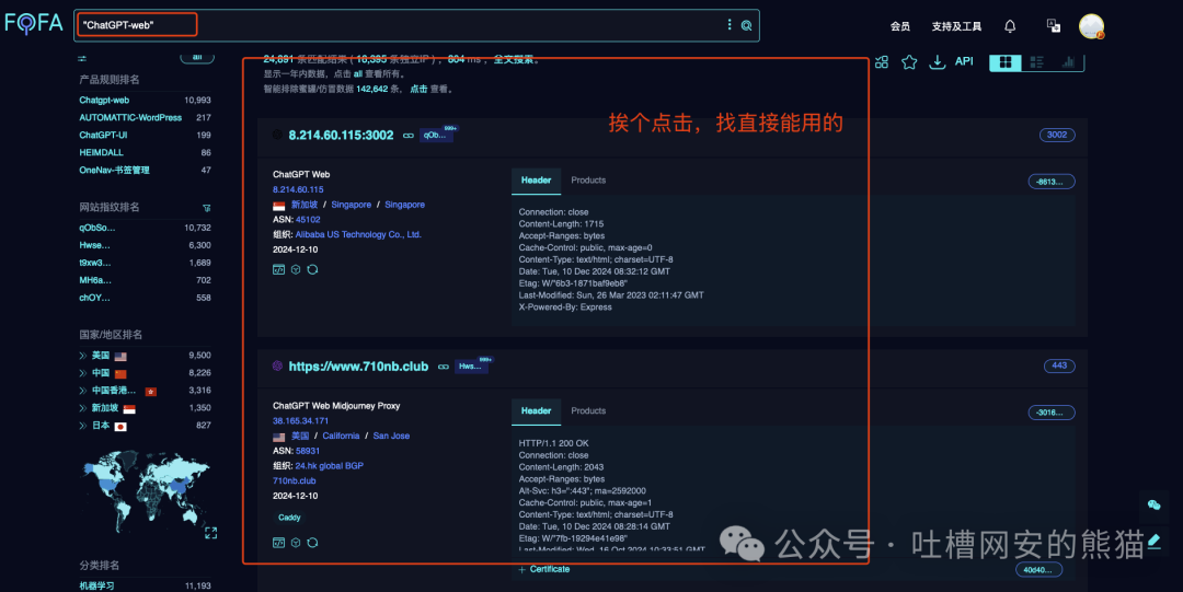 想要随时白嫖ChatGPT资源熊猫教大家个好方式,上Fofa上搜ChatGPT-Web~~
