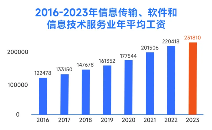 根据国家统计局发布的数据,在所有行业中,IT行业就业人员的薪资位居榜首,年平均工资达到231810元。对于应届生来说,月薪过万基本不是问题,如果有两三年的工作经验,月薪可以达到20K左右。
