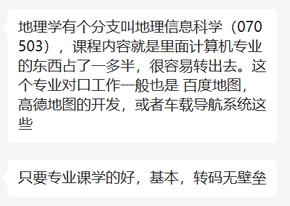 同理,如果你不是学计算机专业的,只要后期掌握相关技能,也能成功“转码”,就像这位学地理的同学分享的一样: