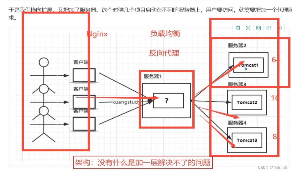 第四阶段优化:(我们再加几台服务器的基础上再加一种中间代理服务器(负责转发))