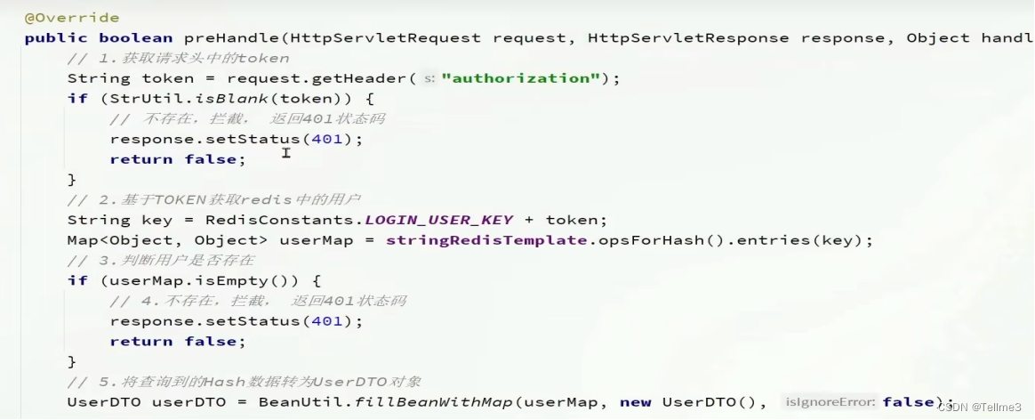 第一步:注入StringRedisTemplate(且只能通过构造函数来注入(因为这个拦截器的类是我们自己new出来的不是通过spring创建的:头上面有注解就是spring创建的))