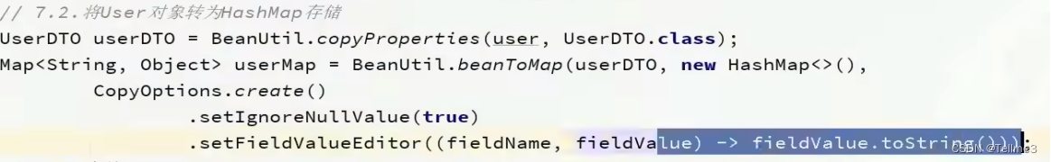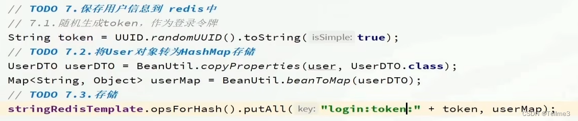 再改下bug:Long不能转发为String(其中StringRedisTemplate只能是string,string类型的存取(即key和value都要是string类型)。而我们UserDto的id是个Long就无法存进redis了)