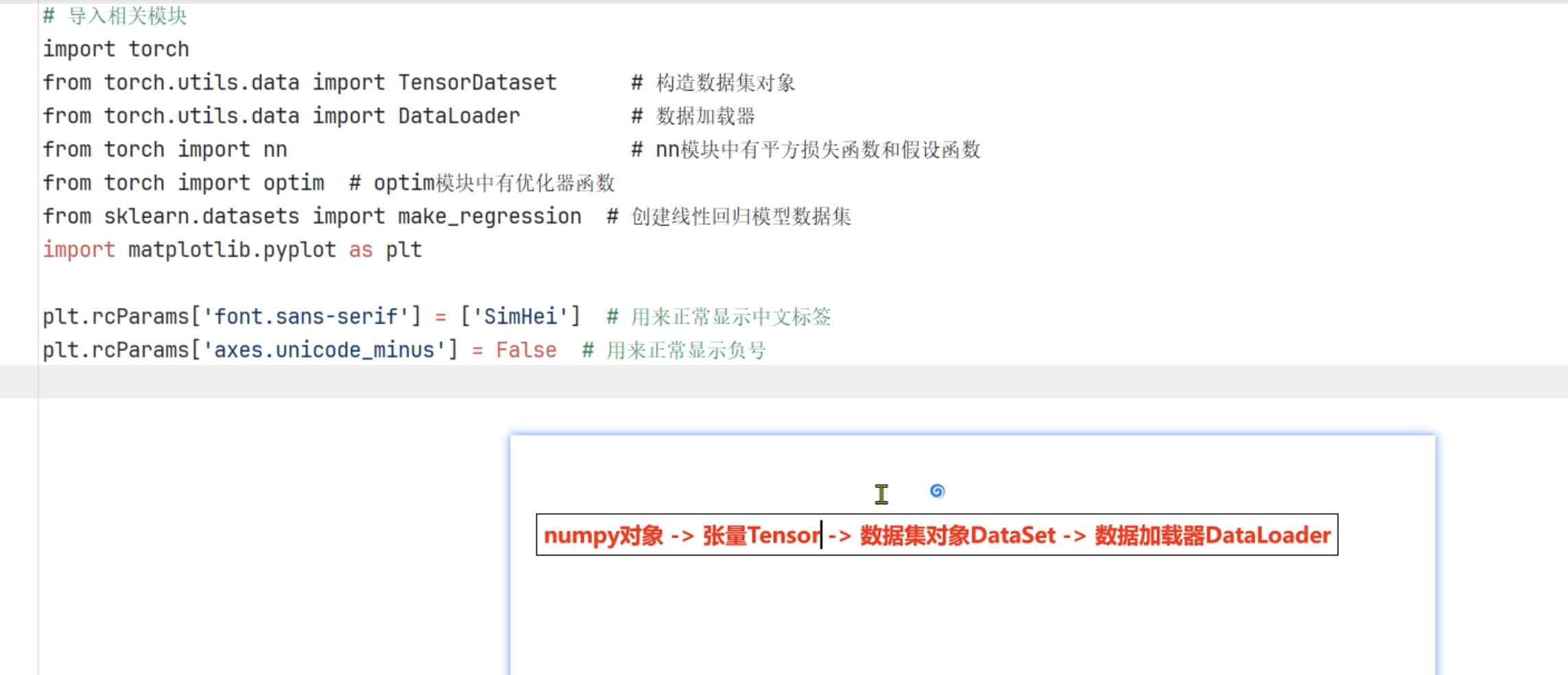 - loss 损失函数计算损失值,需要使用z也就是y_pred ,注意是z对y,预测值对真实值预测值是第一个参数,和真实值loss = criterion(y_pred, train_y.reshape(-1,1))