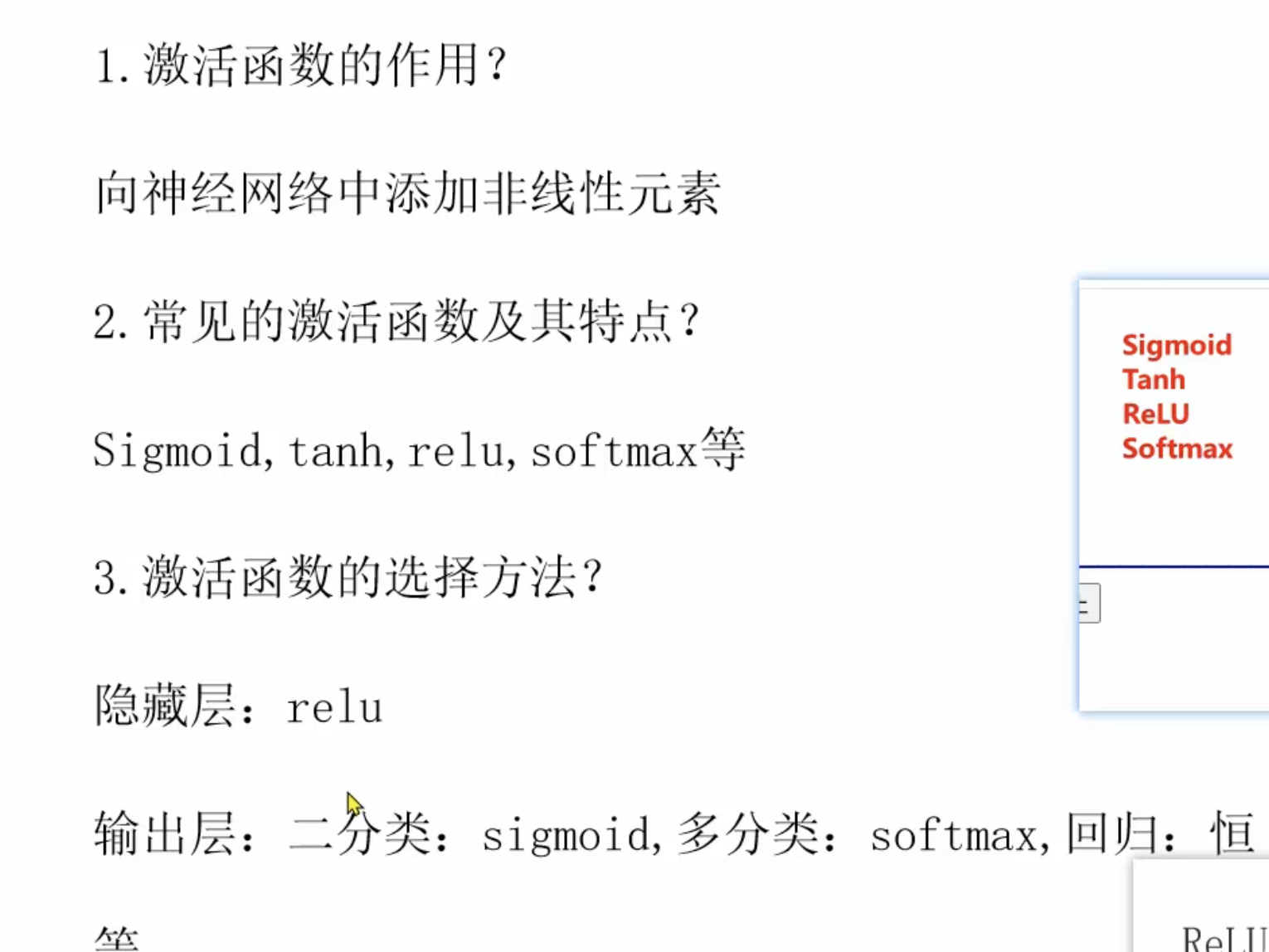 - 输出层,二分类就使用sigmoid,多分类建议softmax
