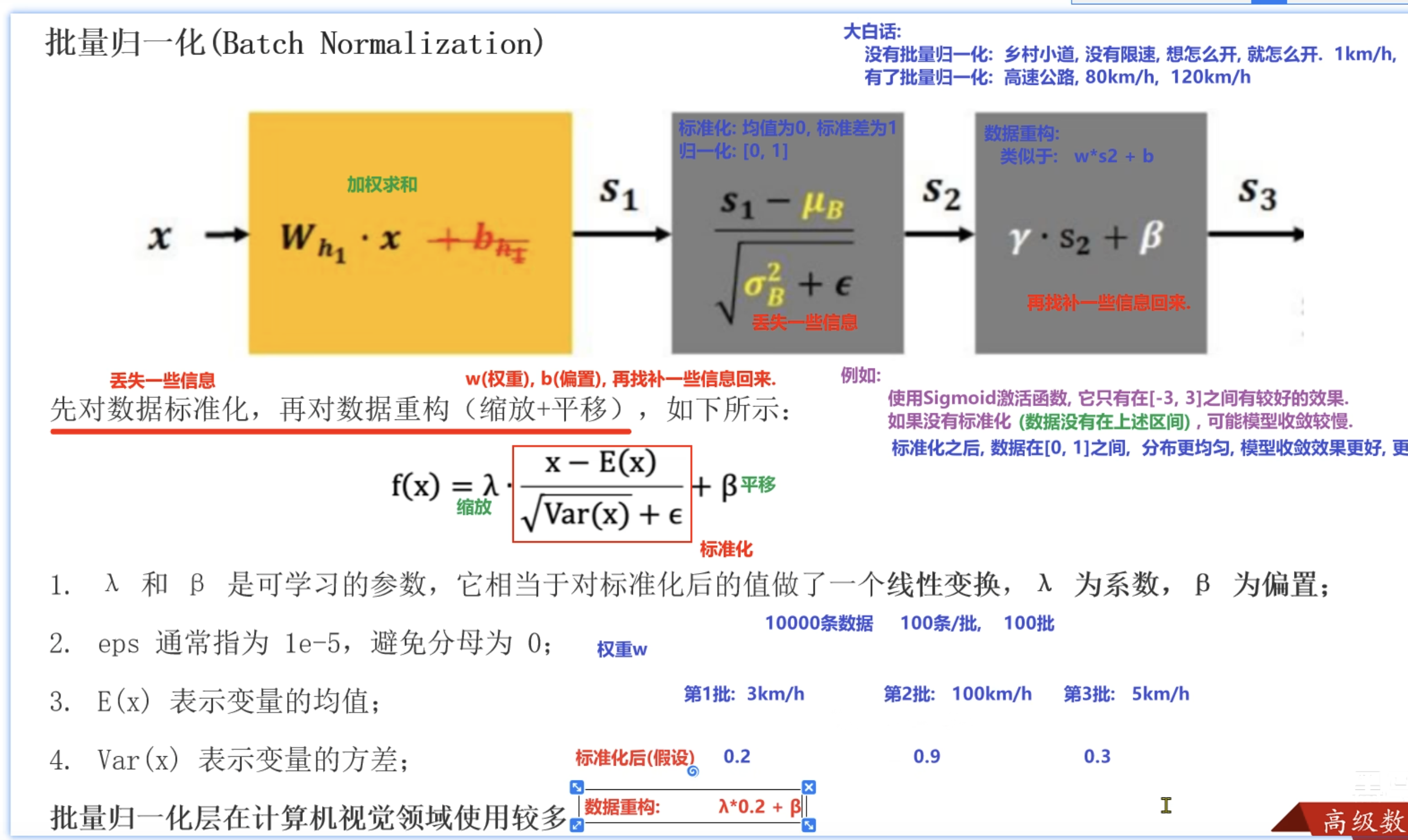 - 然后再进行数据重构,wx+b这种进行找补一些信息回来(例如再给上面的0.2,进行 r*0.2 +β 这种就右放大了,也就找了一些信息回来)