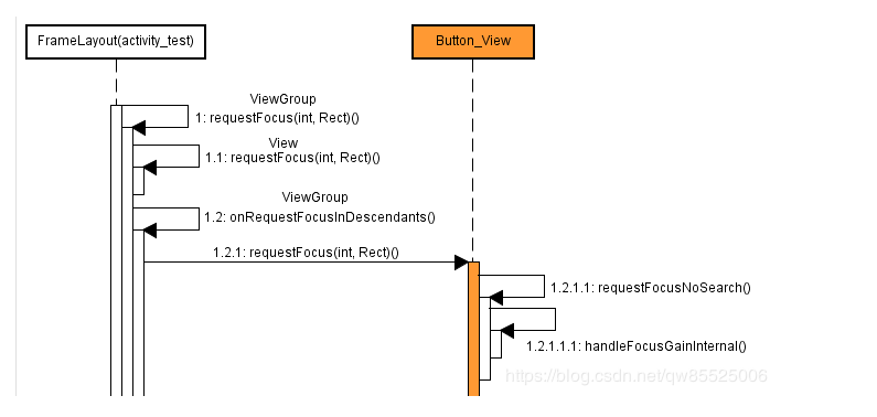 Button1_View→focusSearch(int direction)→FrameLayout(activity_test.xml)_ViewGroup→focusSearch(View focused, int direction)→。。。→FrameLayout(activity_test.xml)_ViewGroup→
