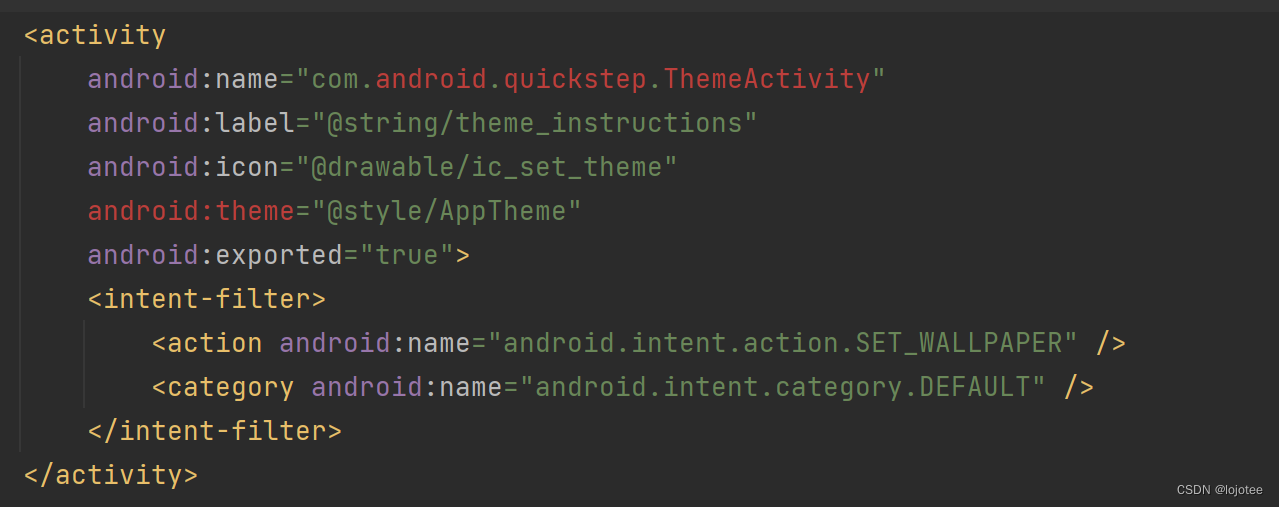 我看着设置里面的壁纸选项,想着这是怎么搞进去的。接着我网上冲浪,顿时灵光一闪,恍然大悟。这个activity应该就是根据某些action,把那些选项添加进去的,而不是在布局里面写死的。