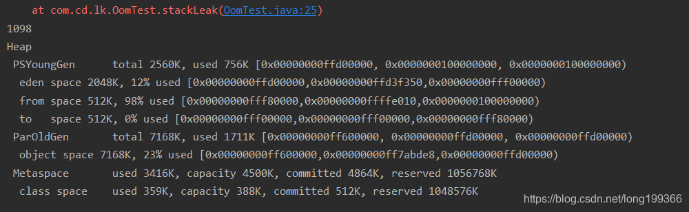 jvm参数:-verbose:gc -XX:+PrintGCDetails -Xmx10M -Xss128K