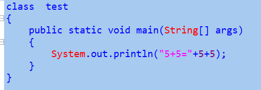 •例如:System.out.println("5+5="+5+5);//打印结果是?