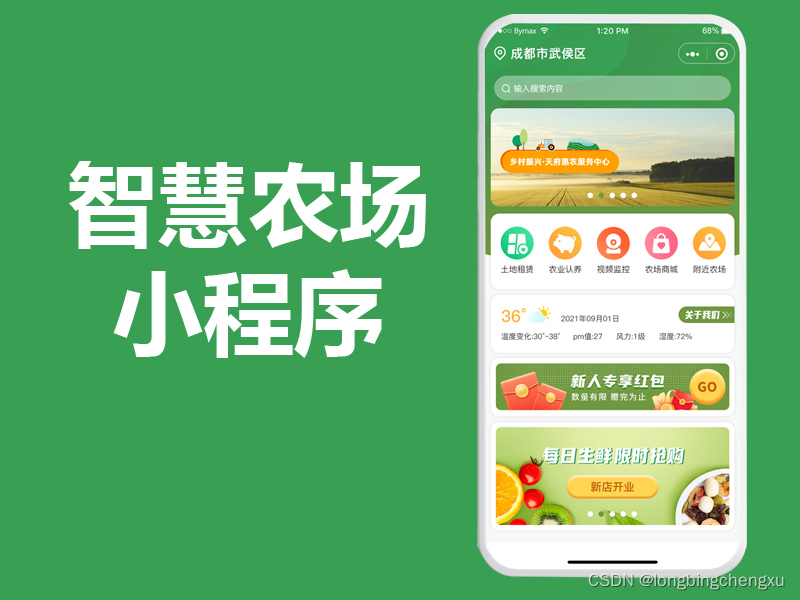 【智慧农业小程序系统】的UI设计样稿,应该具备四个端口页面,分别是平台管理人员端,农场主端,地主端,消费者端。