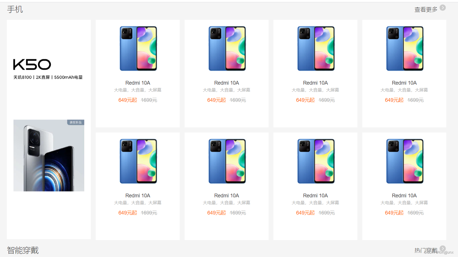 <p class="name2">Redmi 10A</p><p class="disc2">大电量,大音量,大屏幕</p><p class="price2">649元起 <del>1699元</del></p>