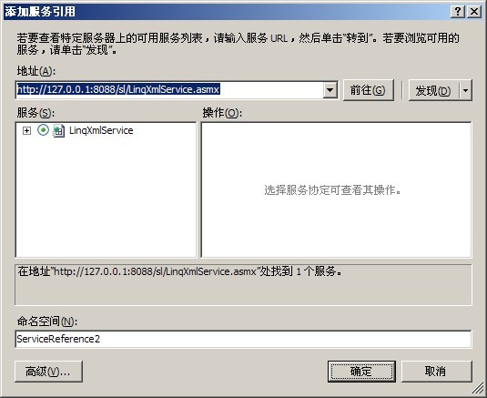 比如地址是http://127.0.0.1:8088/sl/LinqXmlService.asmx