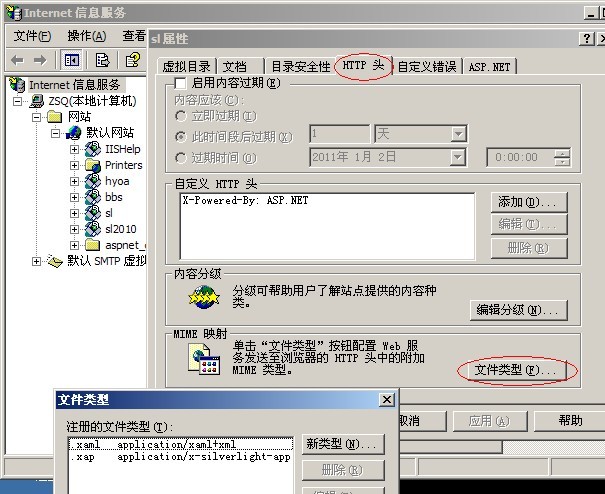 如图,右击虚拟目录->属性->HTTP头->MIME类型。添加
