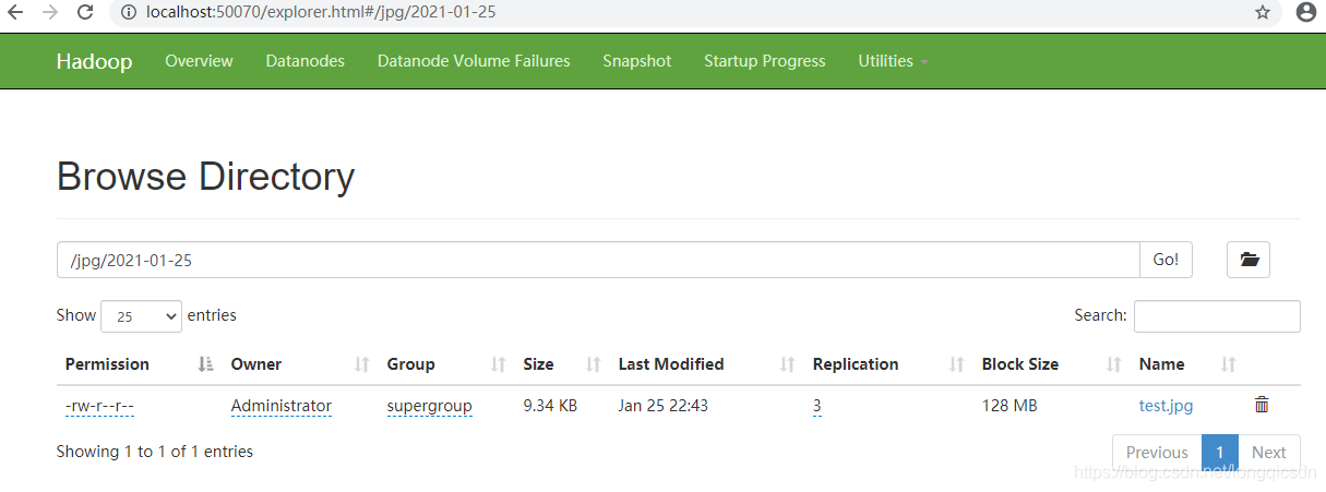 控制台不报错基本就成功了,到http://localhost:50070/explorer.html页面里也是可以看到上传的文件。