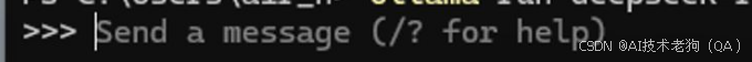 且命令提示符输入的位置会变成【>> send a message for help】的提示
