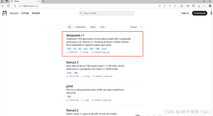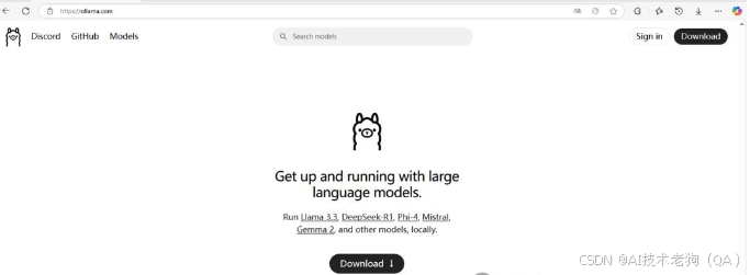 首先你需要安装一个Ollama,这个软件相当于运行DeepSeek模型的底层,没有这个底层就没办法跑DeepSeek AI模型。