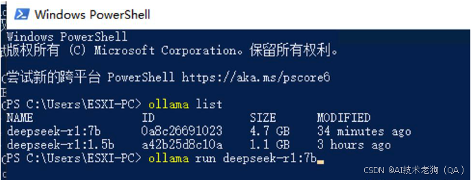 ollama run 模型名称(NAME)我这里是 ollama run deepseek-r1:7b