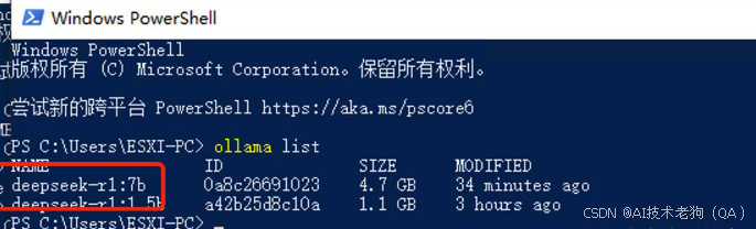 在终端里输入【ollama ps】查看你安装的模型,复制一下你安装的模型的【NAME】,我这里是【deepseek-r1:70b】(如果你安装了多个模型,这里就相当于选择不同的模型进行对话了)